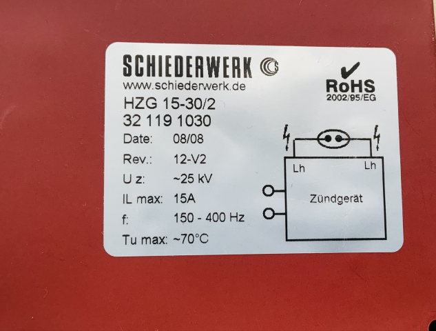 Schiederwerk Zündgerät HZG 15-30/2 15A Lamp Ignitor Power Supply 25 kV